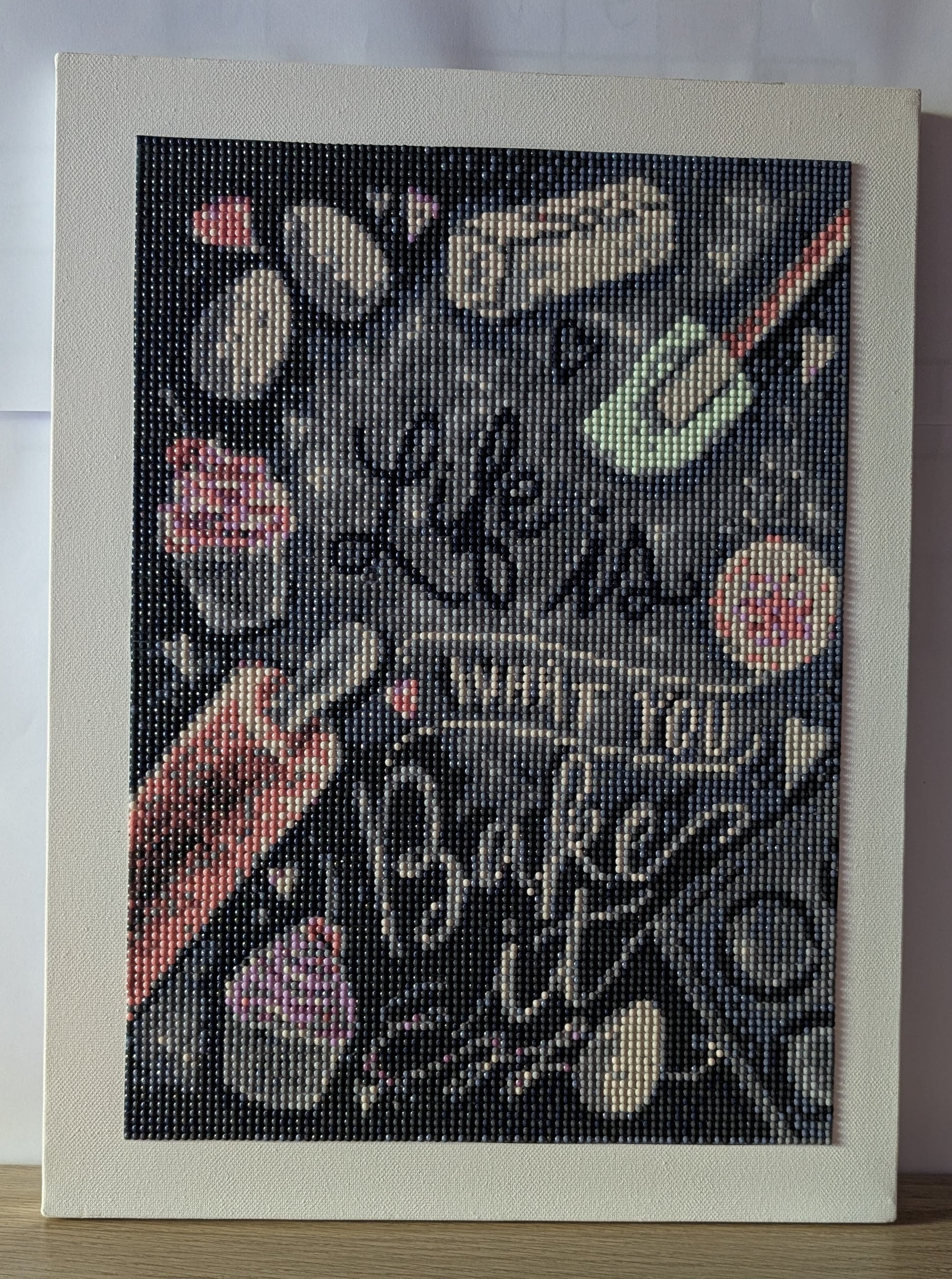 Quadro su tela realizzato con la tecnica del diamond pianting con raffigurati utensili e prodotti usati in cucina